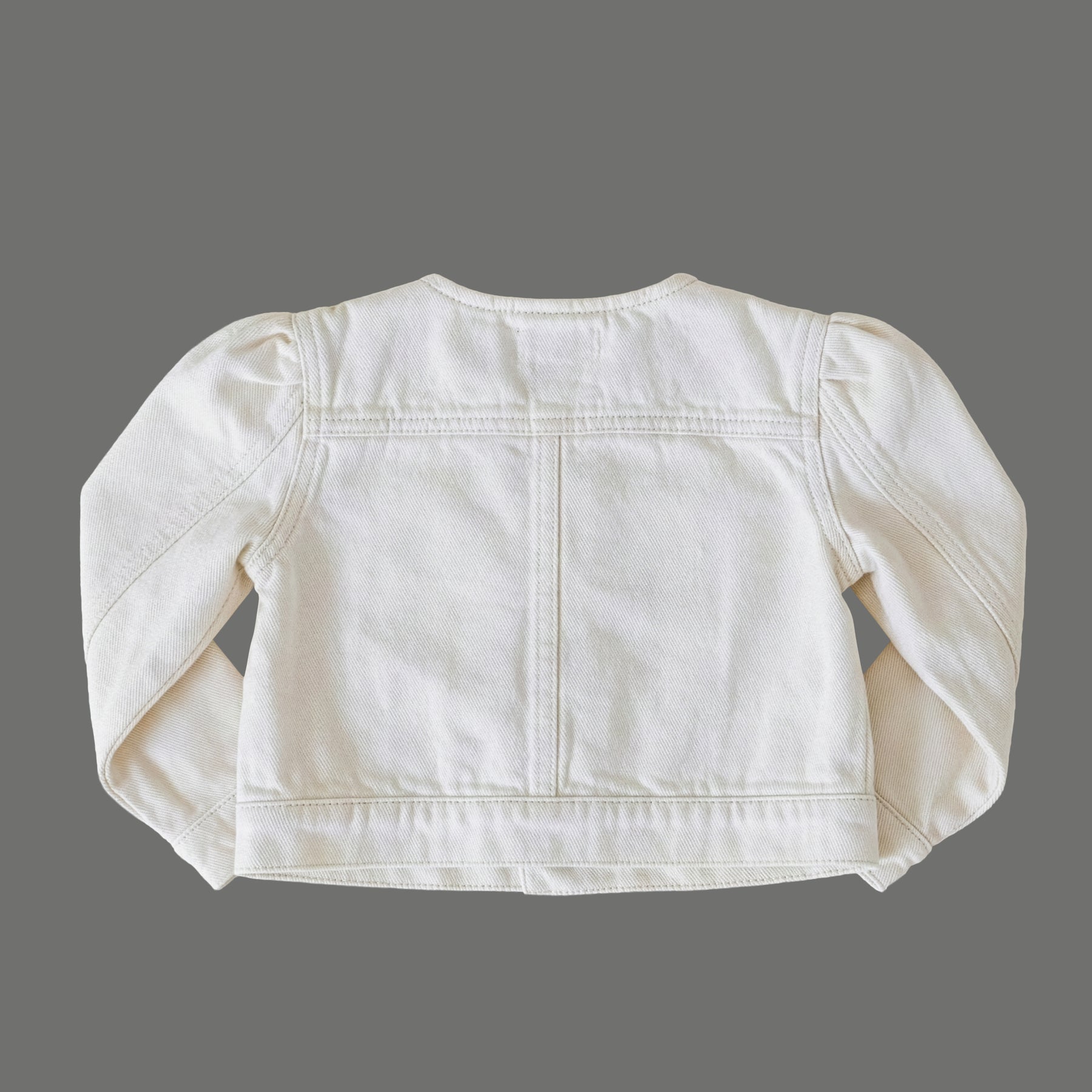 Classic cropped denim jacket featuring a button-front closure, traditional collar, and functional chest pockets. Crafted from durable cotton denim with a timeless silhouette that offers versatile layering potential and everyday comfort.